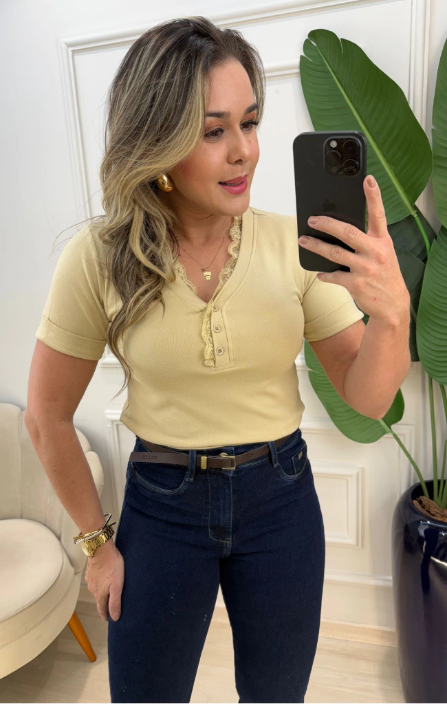 Versátil, combina facilmente com saias, shorts ou calças, perfeita para compor looks casuais ou mais arrumadinhos.